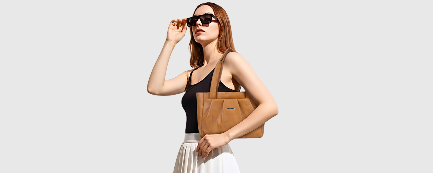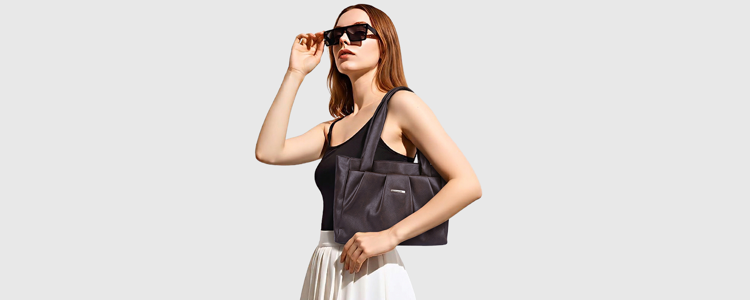 Bagmire Women's Pleated Faux Leather Tote- Padded Handle Shoulder Bag