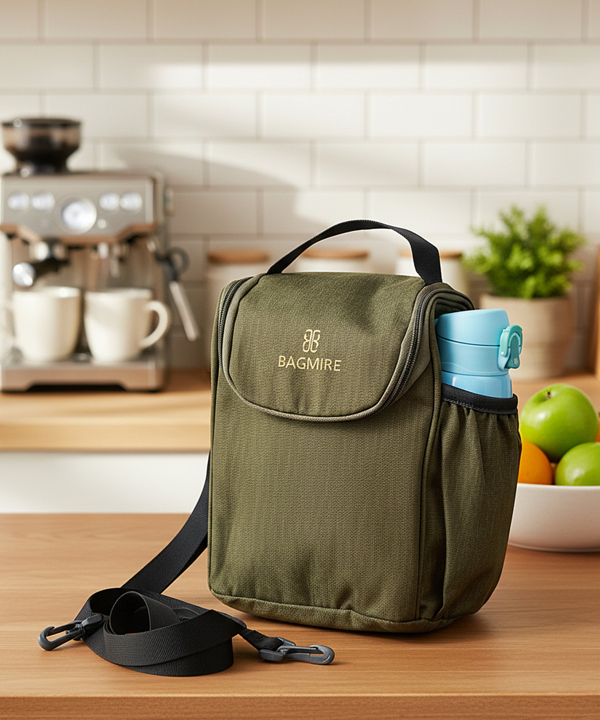 BAGMIRE Insulated Lunch Bag for Office & Travel – Premium Denim Style Food Carry Bag with Bottle Holder, Adjustable Strap & Thermal Lining