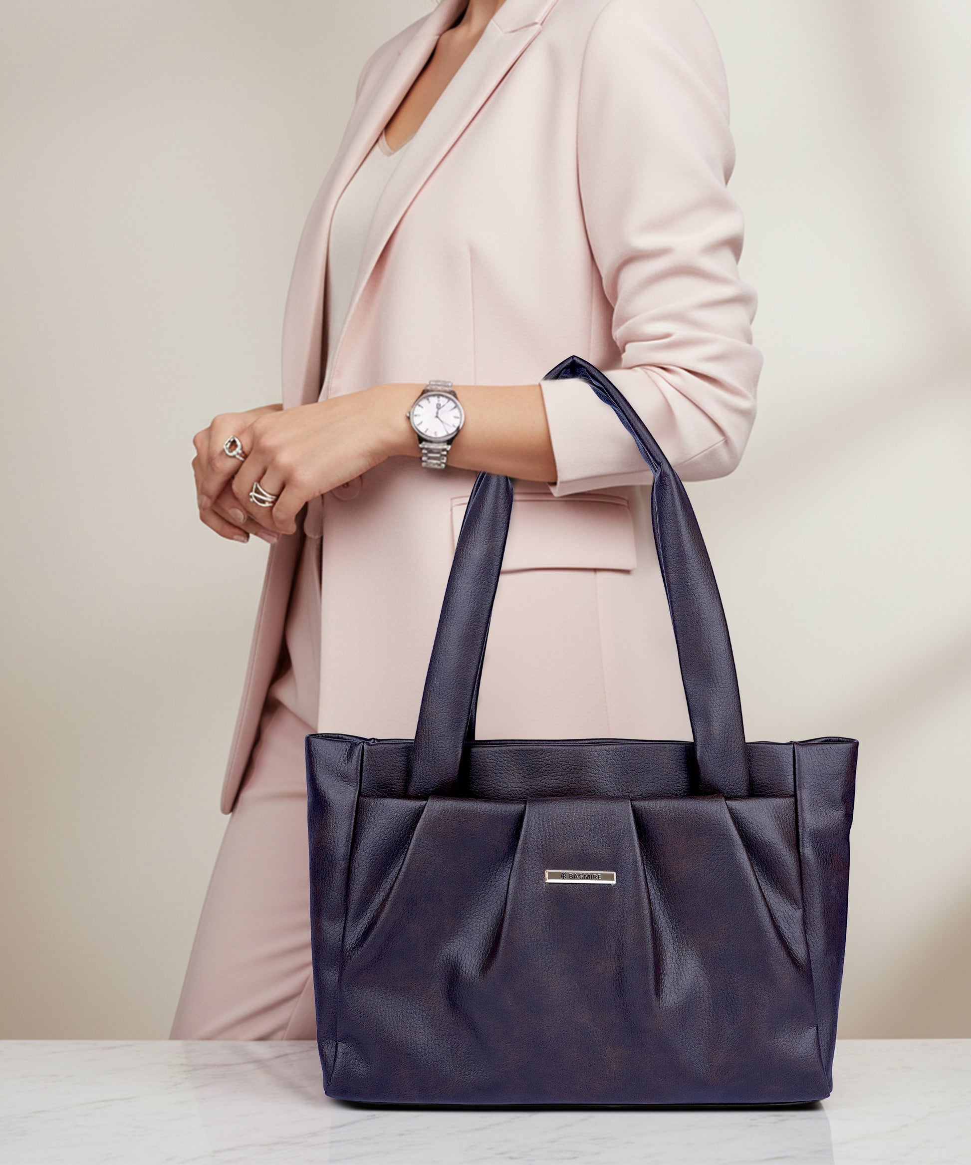 Ayesha Bagmire Women's Pleated Faux Leather Tote- Padded Handle Shoulder Bag