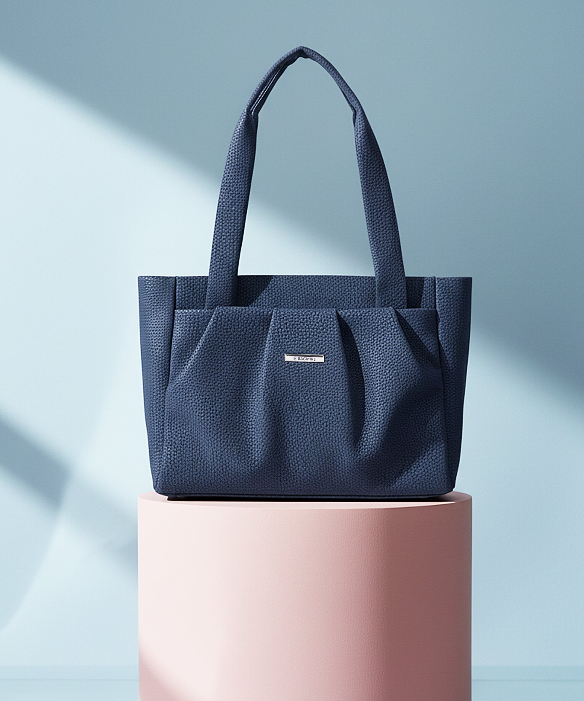 Bagmire Women's Pleated Faux Leather Tote- Padded Handle Shoulder Bag