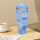 Floral Insulated 900ML Tumbler with Handle and Straw Lid Blue