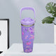 Floral Insulated 900ML Tumbler with Handle and Straw Lid Purple